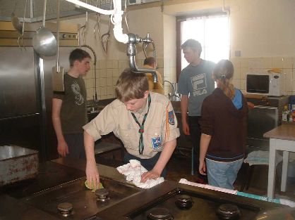 | Während der Küchendienst sich in der Küche abrackert, vergnügen sich andere auf der Skipiste - aber ein Trost: jeder kommt mal an die Reihe! |