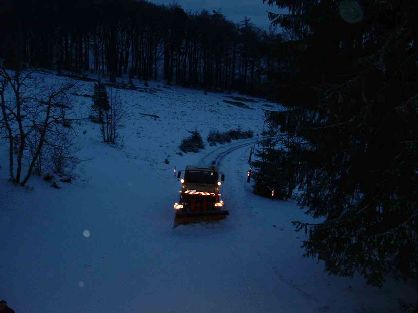 Ab und zu musste der Schneepflug den Nachts gefallenen Schnee von der Zufahrtsstraße räumen. | ![]() |